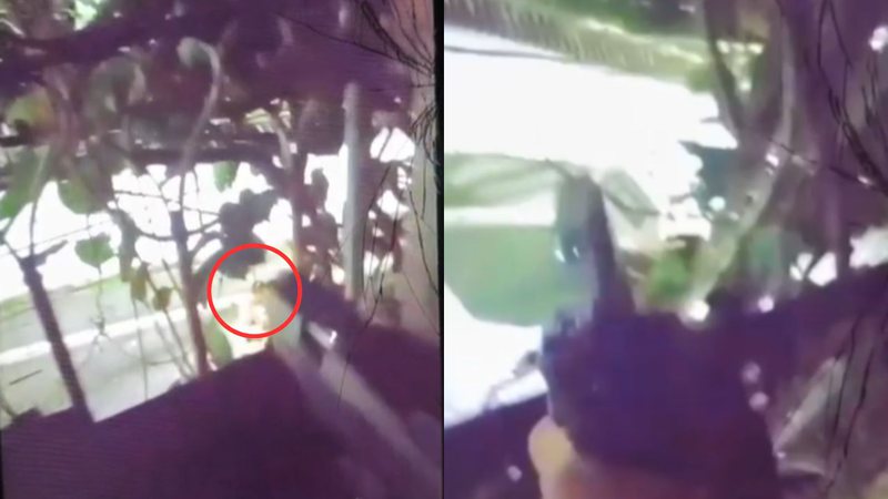 Em imagens obtidas pela reportagem do BNews, é possível ver o momento em que o suspeito, escondido dentro de uma casa, age e faz o sinal da facção Bonde do Maluco (BDM). Apesar de ter mirado, ele não efetua nenhum disparo.