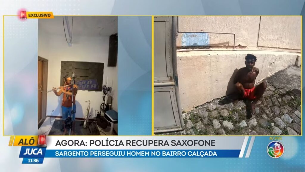 Um homem foi preso na manhã desta quarta-feira (30) após assaltar um motociclista e um músico no bairro da Calçada, em Salvador. Durante a ação criminosa, o suspeito roubou, entre outros objetos, um saxofone. Com exclusividade no programa Alô Juca mostrou o assaltante sendo surpreendido por um sargento, que iniciou a perseguição a pé pela Avenida da Calçada.