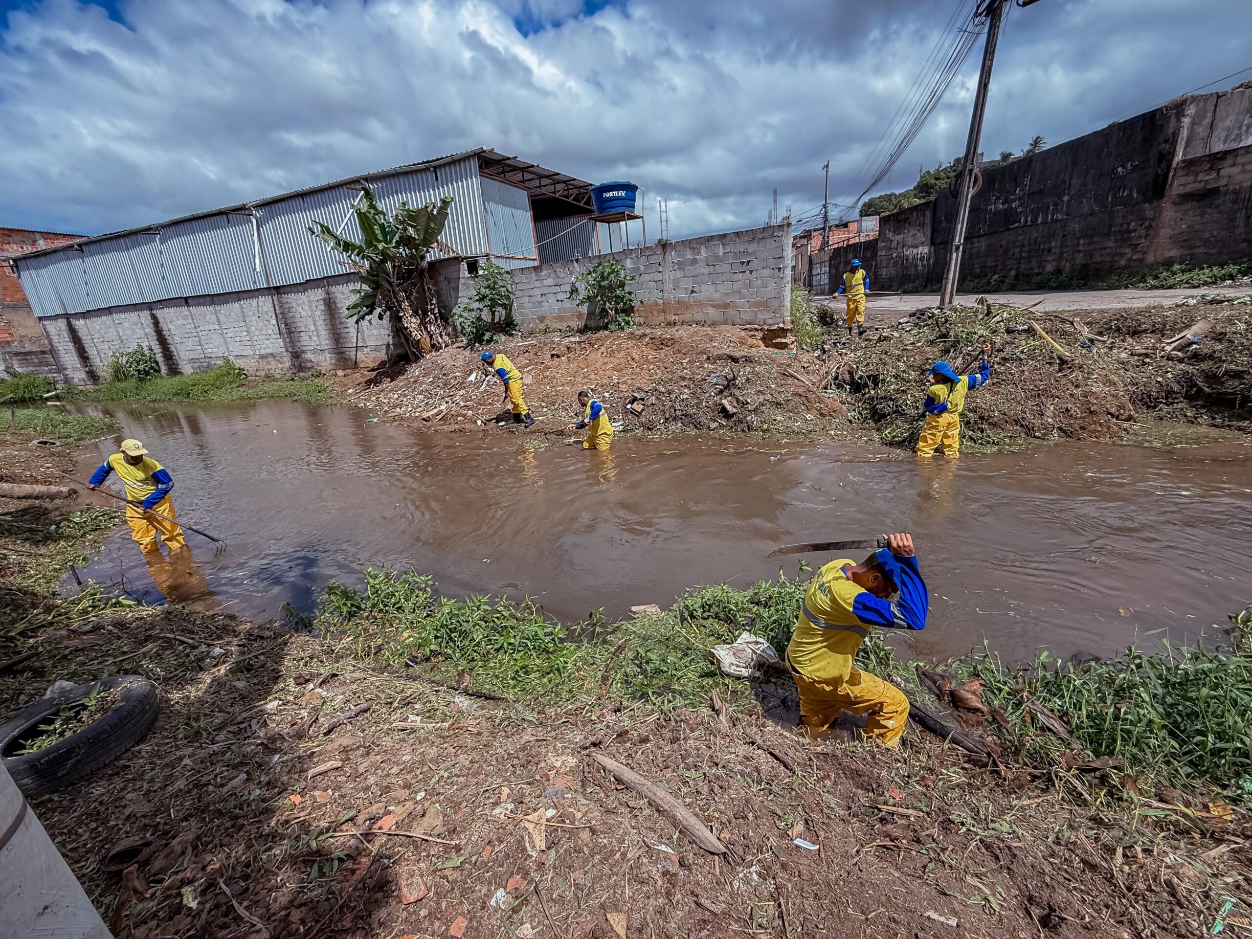 As equipes técnicas da secretaria estão em campo nos bairros Itinga, Vilas do Atlântico, Caji e Vida Nova. Em Itinga, as equipes estão realizando a obra de drenagem na Rua Floriano Peixoto, fundamental para evitar futuros alagamentos. Também foi realizada a limpeza manual do canal próximo à Unidade de Pronto Atendimento (UPA) e limpeza mecanizada do canal na localidade do Talismã.