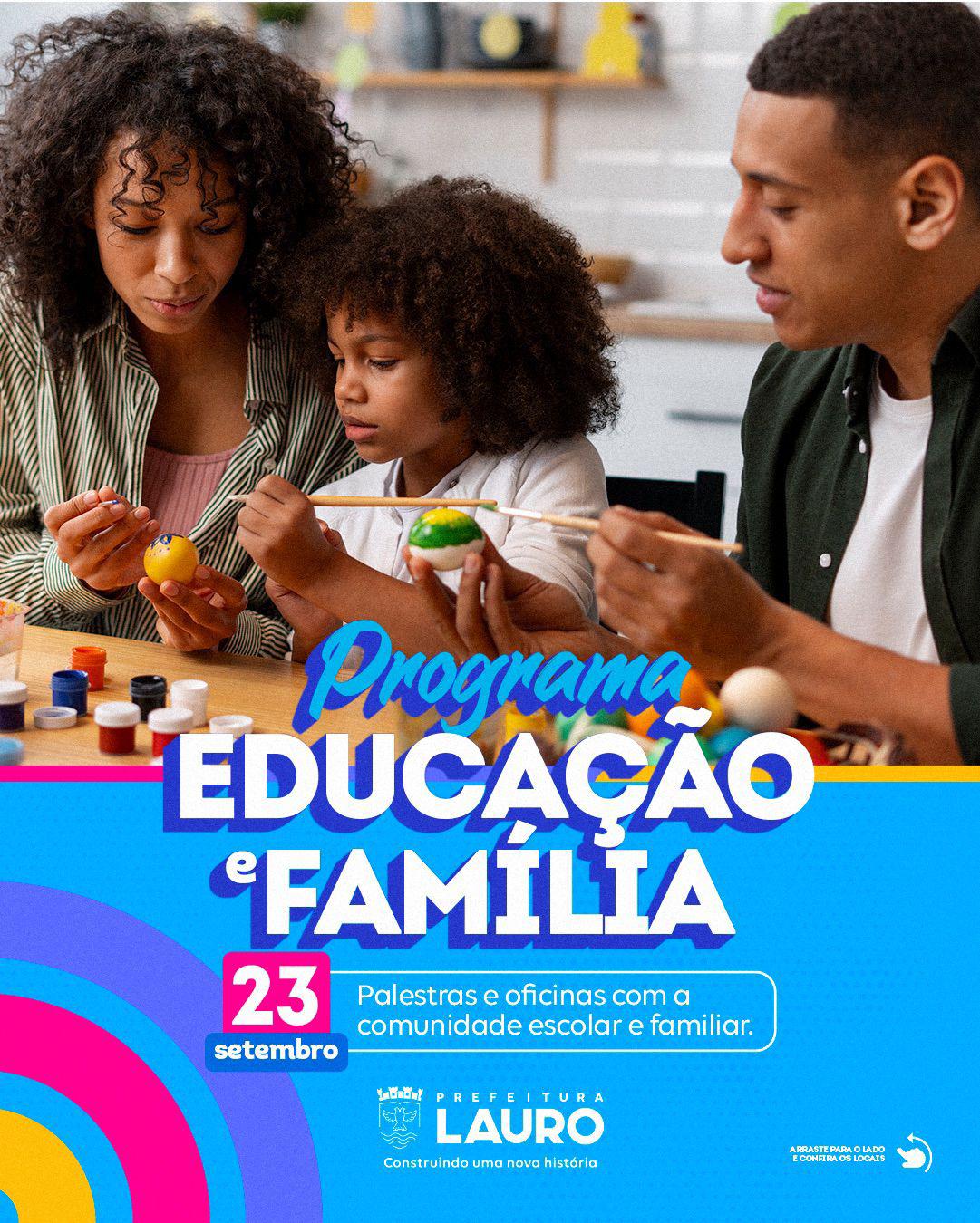 Nesta terça-feira (23/9), a Prefeitura de Lauro de Freitas, por meio da Secretaria Municipal de Educação (SEMED), recepciona nas unidades escolares da rede municipal de ensino o Programa Federal Educação e Família. A iniciativa tem como objetivo fortalecer os vínculos entre a escola e as famílias, promovendo maior integração e corresponsabilidade na formação dos estudantes.